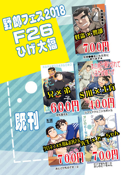](http://livedoor.blogimg.jp/higedaihuku/imgs/0/7/073243e9.jpg “野郎フェス準新刊”)[野郎フェス2018